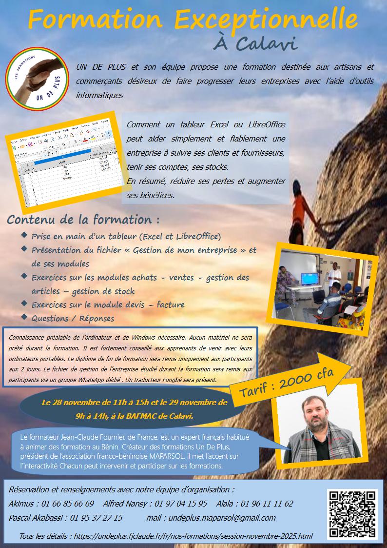 - Tarif : 2000 francs par participant